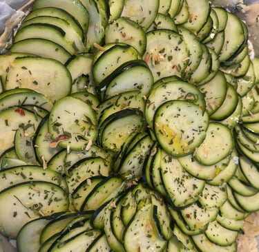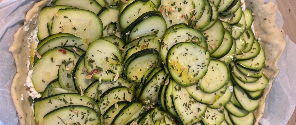 Disposer la ricotta dans le fond de tarte et ajouter les courgettes en rondelles